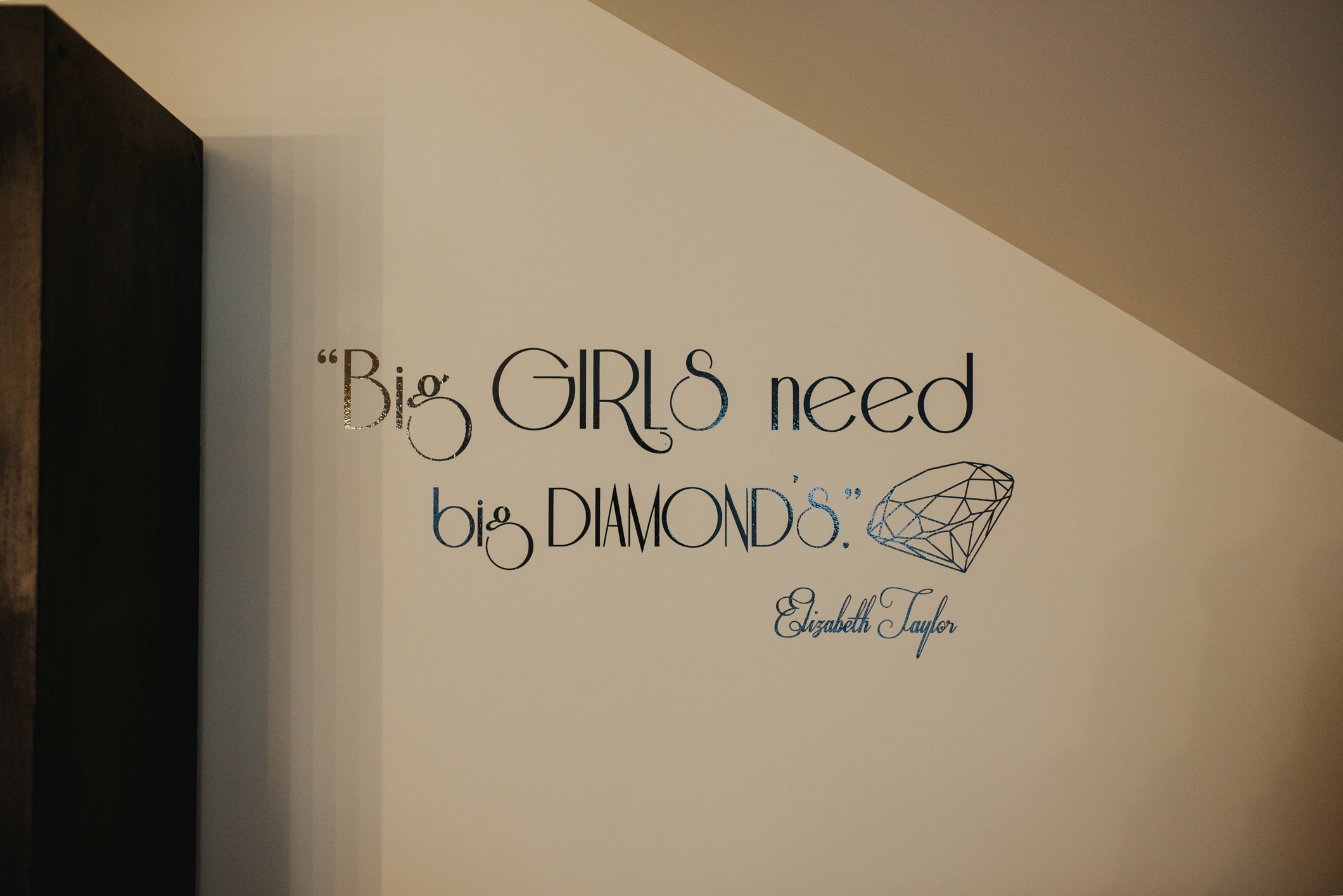 They found a perfect location to host their guests in Hollywood House, Belper which they had all to themselves for the weekend. Being based in Belper myself, I was surprised to discover this venue, hidden away just outside the town. With stunning views across the Derwent Valley, and bedrooms each inspired by a different Hollywood icon, it was a great find for Zoe and Paul and just what they needed for their day. Although I didn’t get to see every room in the House, I loved the famous quotes painted on to the stairs leading up to where Zoe and Paul were staying, and I loved the styling in the Walt Disney themed room!